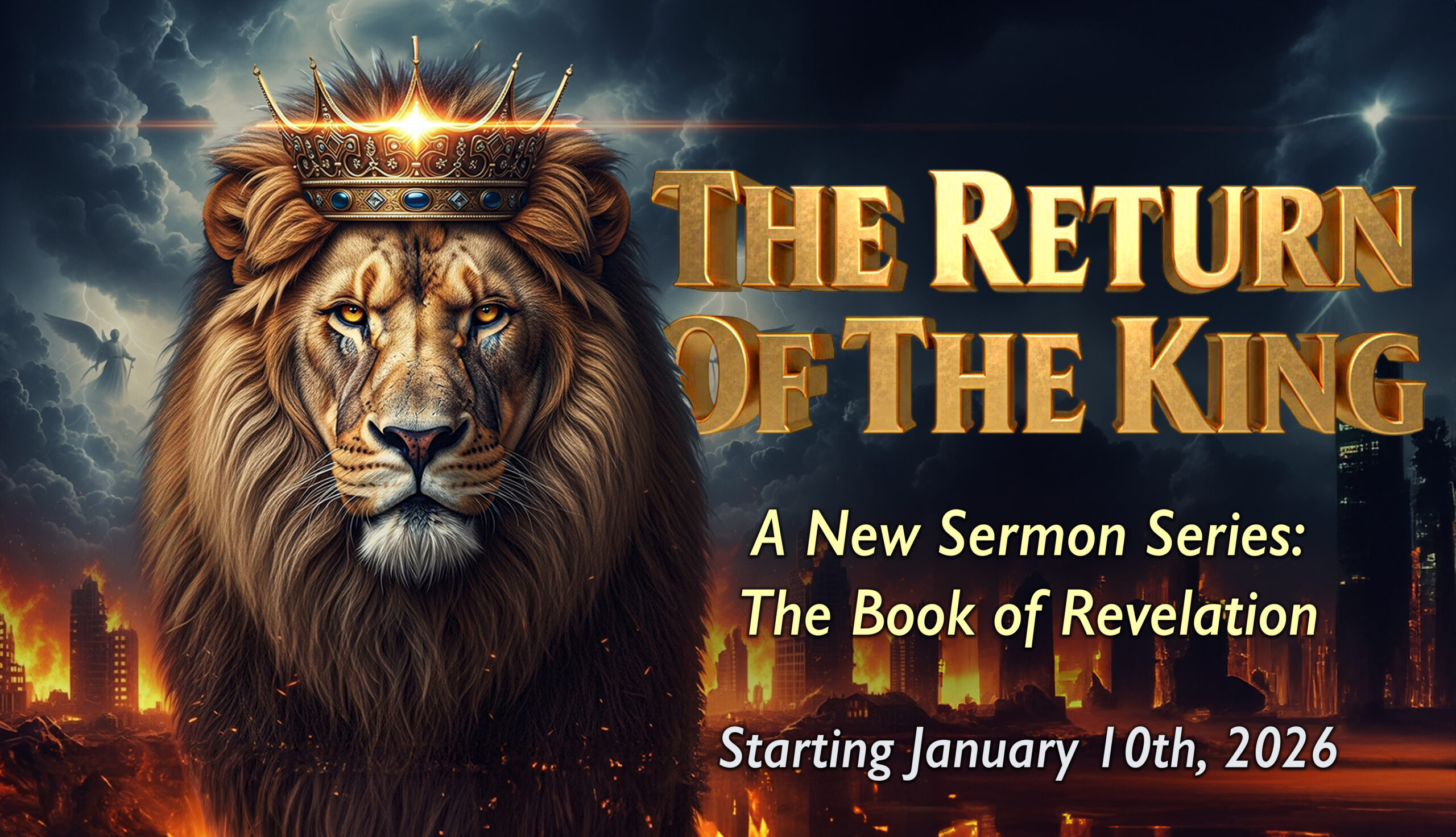 The Return of the King is a vivid, hope-filled sermon series through the book of Revelation that lifts our eyes from the chaos of the world to the glory of Christ’s ultimate victory. Together, we’ll explore the apocalyptic visions that reveal Jesus not as a distant figure, but as the reigning King who is coming again to make all things new. From the throne room of heaven to the final defeat of evil, this series reminds us that history is not spiraling out of control – it is moving toward the triumphant return of our Lord. In a world longing for justice, peace, and restoration, Revelation boldly proclaims the good news: the King is coming, and His Kingdom will stand forever.